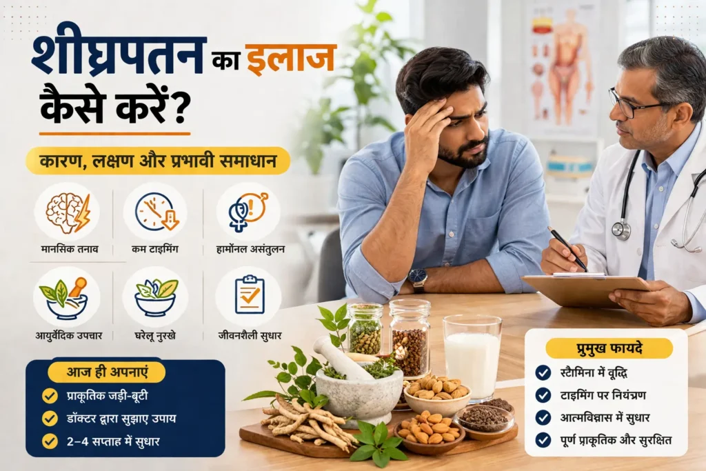 शीघ्रपतन (Premature Ejaculation) पुरुषों में होने वाली एक अत्यंत सामान्य लेकिन संवेदनशील समस्या है, जो न केवल शारीरिक बल्कि मानसिक और वैवाहिक जीवन को भी प्रभावित करती है। आधुनिक जीवनशैली, मानसिक तनाव और असंतुलित आहार इसके प्रमुख कारणों में शामिल हैं।